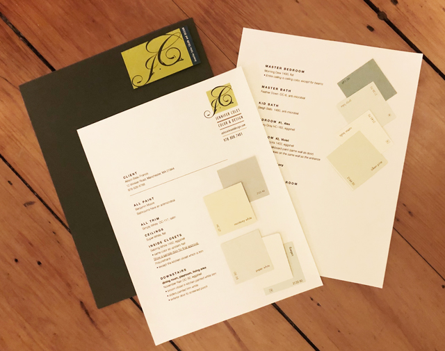 In general, color consulting takes two visits. The first visit is to see the space, get to know your style, and determine your goals. During the second visit, color solutions are proposed and fine-tuned. At the end of the process you will have a paint plan complete with paint chips and everything your painter or contractor will need. Sometimes subsequent visits are scheduled to review work in progress or to address last-minute concerns.